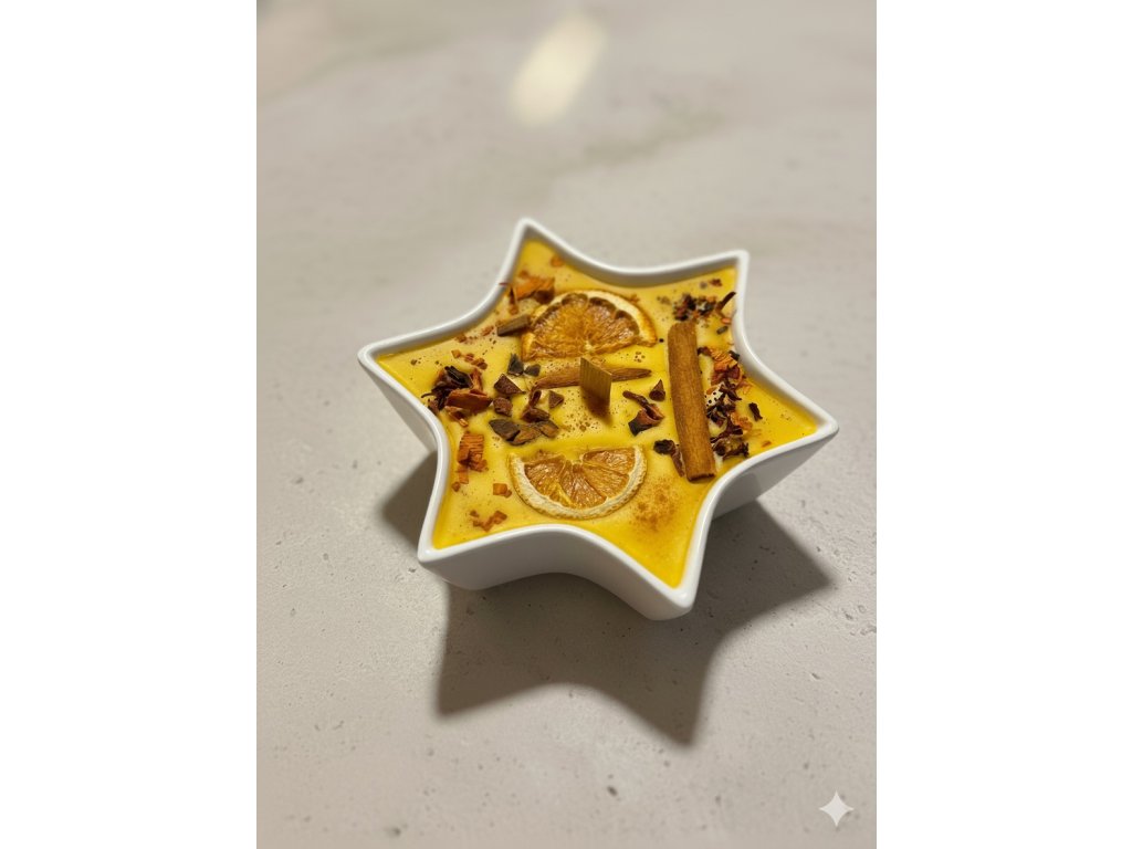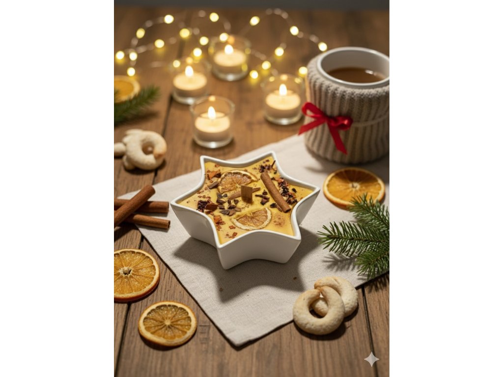 🌟 Svíčka z včelího vosku s vánočním kořením v keramické hvězdě