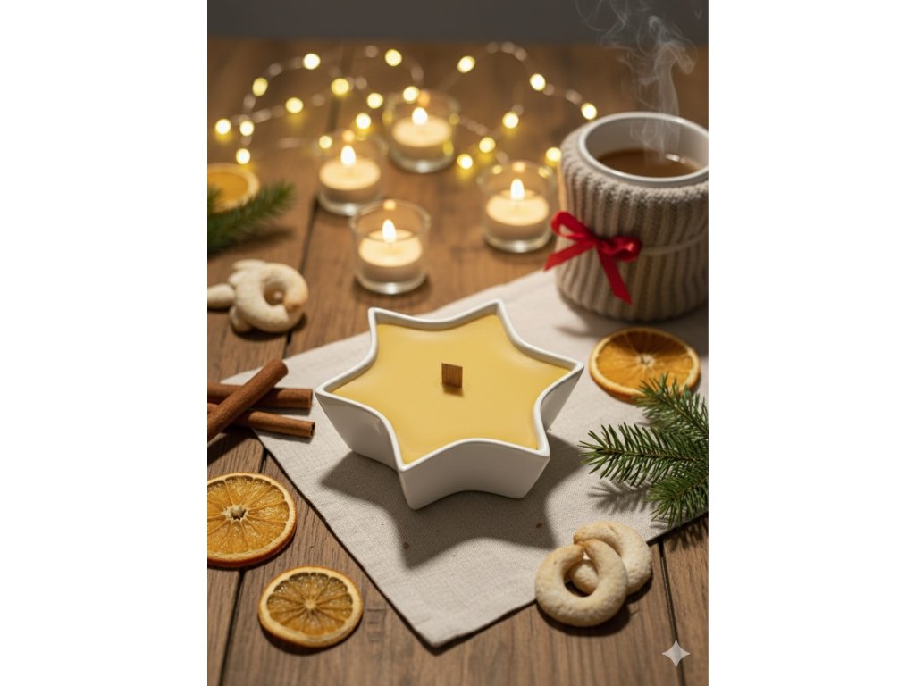 Svíčka z včelího vosku v keramické hvězdě s dřevěným knotem MENŠÍ