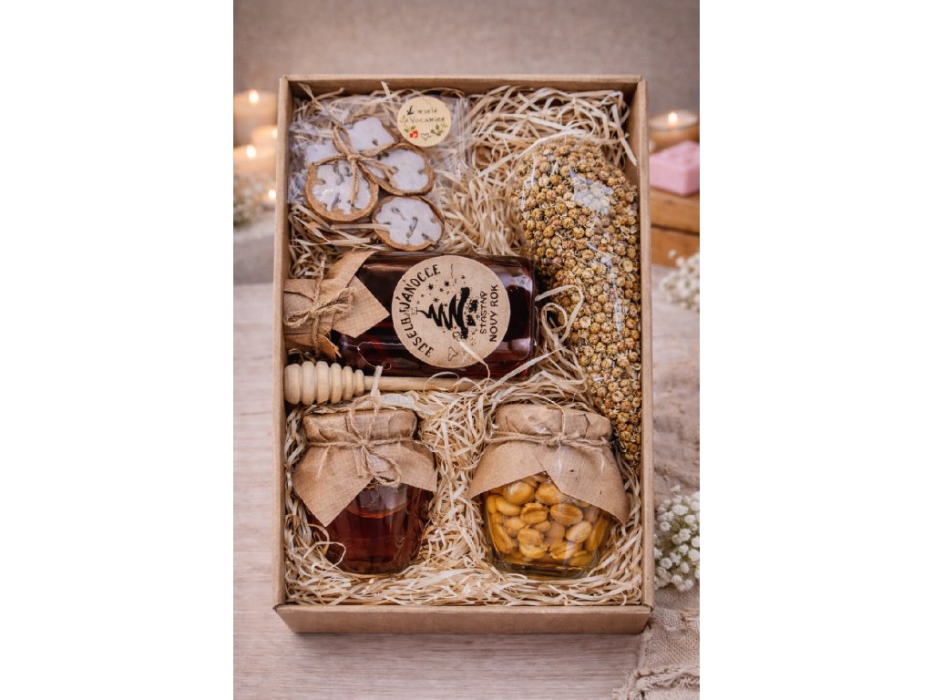 Medová sada s bylinkovým čajem, vánoční etiketa.