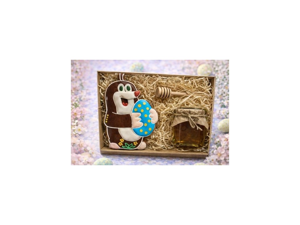 Složení perníčku: pšeničná mouka, cukr, med, vejce, máslo, kakao, kypřící prášek do perníku, jedlá soda, směs koření. Perníčky obsahují potravinářské barvy dle vzoru.